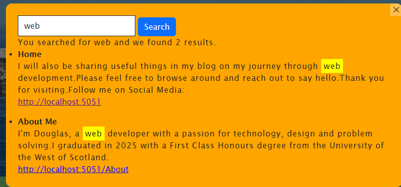 It took me quite a while to implement search functionality on my website. I originally tried ElasticSearch but came to the conclusion that there was a bug stopping hit highlighting from working in .NET. Solr is one I've tried before and the one I decided to stick with. Hope this code will be helpful and save you some time if you're trying to implement the same functionality. This is the first of what I hope will be many more articles about my journey through web development. I'm very passionate about ASP.NET Core and web development in general.